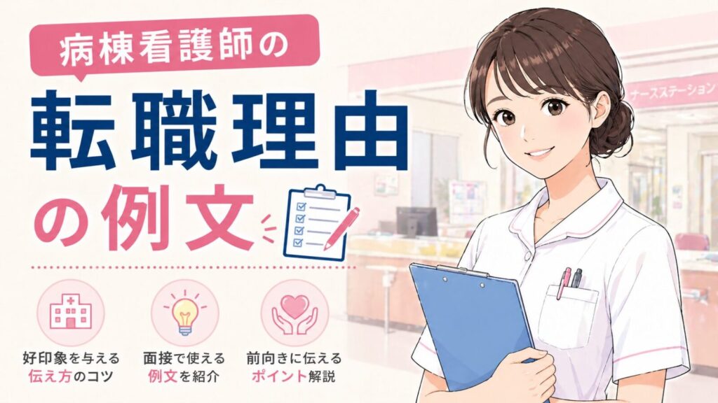 この記事では、病棟・外来・訪問看護・クリニック・介護施設など、看護師の職場別に使いやすい転職理由の例文を紹介します。